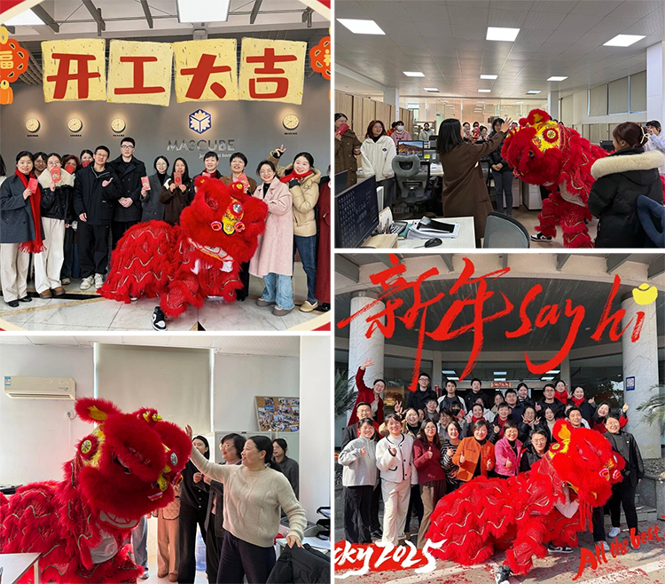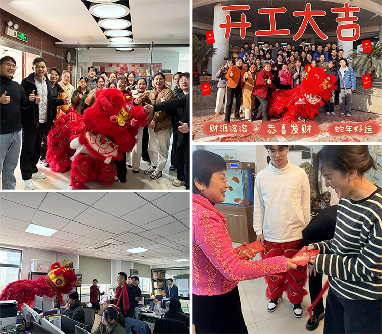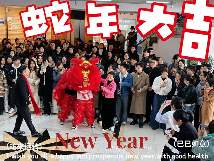 在舞狮欢腾、锣鼓喧天的喜庆氛围中,集团董事长梅飞珍为美博家人送上满满的红包传递新年的祝福与温暖,祝愿大家在新的一年“钱路”亨通,“钱程”似锦!