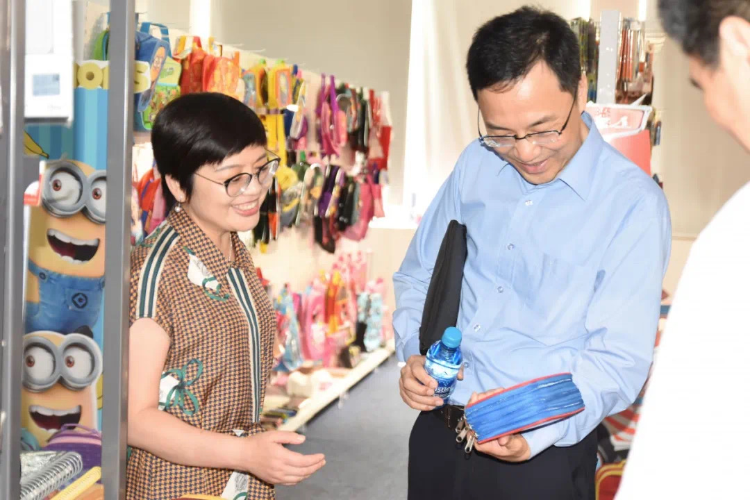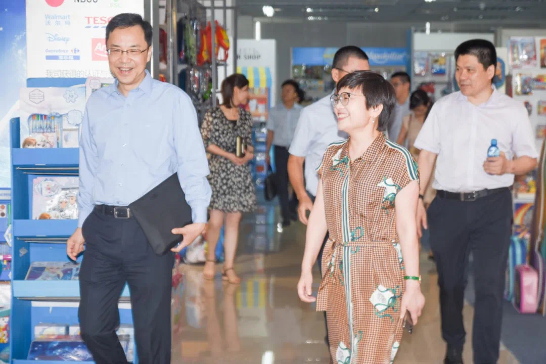 集团董事长梅飞珍携高层热情接待,双方首先参观了中小微企业一站式外贸服务平台—美联,随后走进美博近万平米的文创类、影视授权类、健身家居类样品展厅。参观结束后在总部会议室,美联总经理林银云代表集团向各位前来调研的领导详细介绍了公司发展历程、各产业版块概况、2020年上半年疫情下的经营情况、集团历年与中信保协同合作等方面内容。陈志军总经理对美博集团逐年稳健增长的业务发展,坚持多年来一站式外贸孵化服务平台助力小微企业发展壮大表示了由衷的敬意。