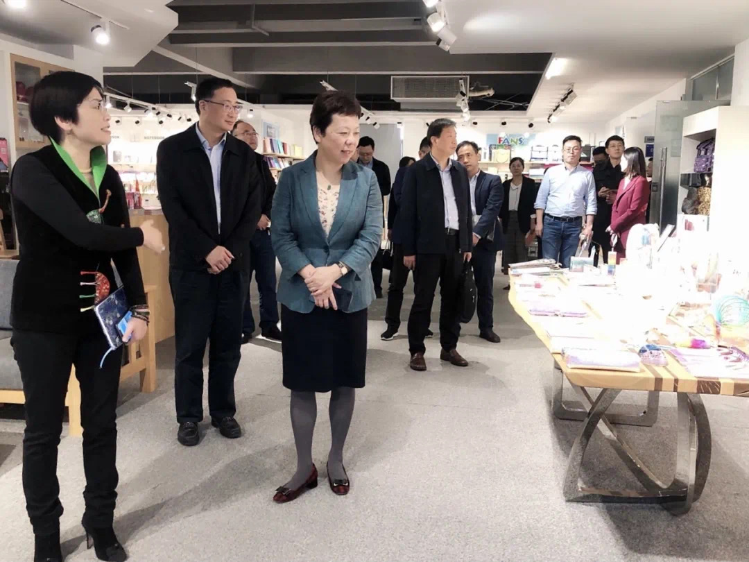 集团董事长梅飞珍携高层热情接待陈瑜局长一行,双方首先参观了中小微企业一站式外贸服务平台—美联,美联总经理林银云代表集团向各位前来调研的领导作了详细介绍,随后陈瑜局长走进美博8000平方的专业化产品展示中心,参观了在这里展出的涉及文创产品、全零售(整店输出)、家居产品类等4万余款产品。