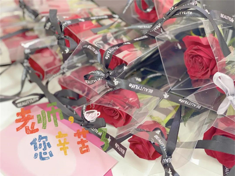 公司也为师父们准备了鲜花、奶茶、蛋糕